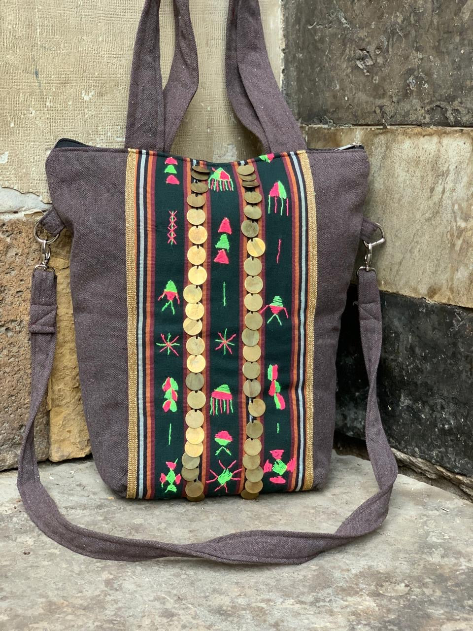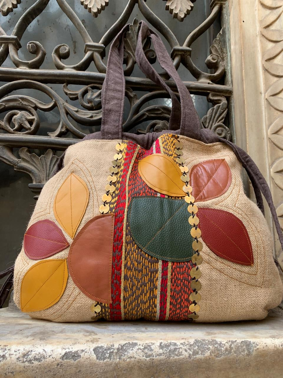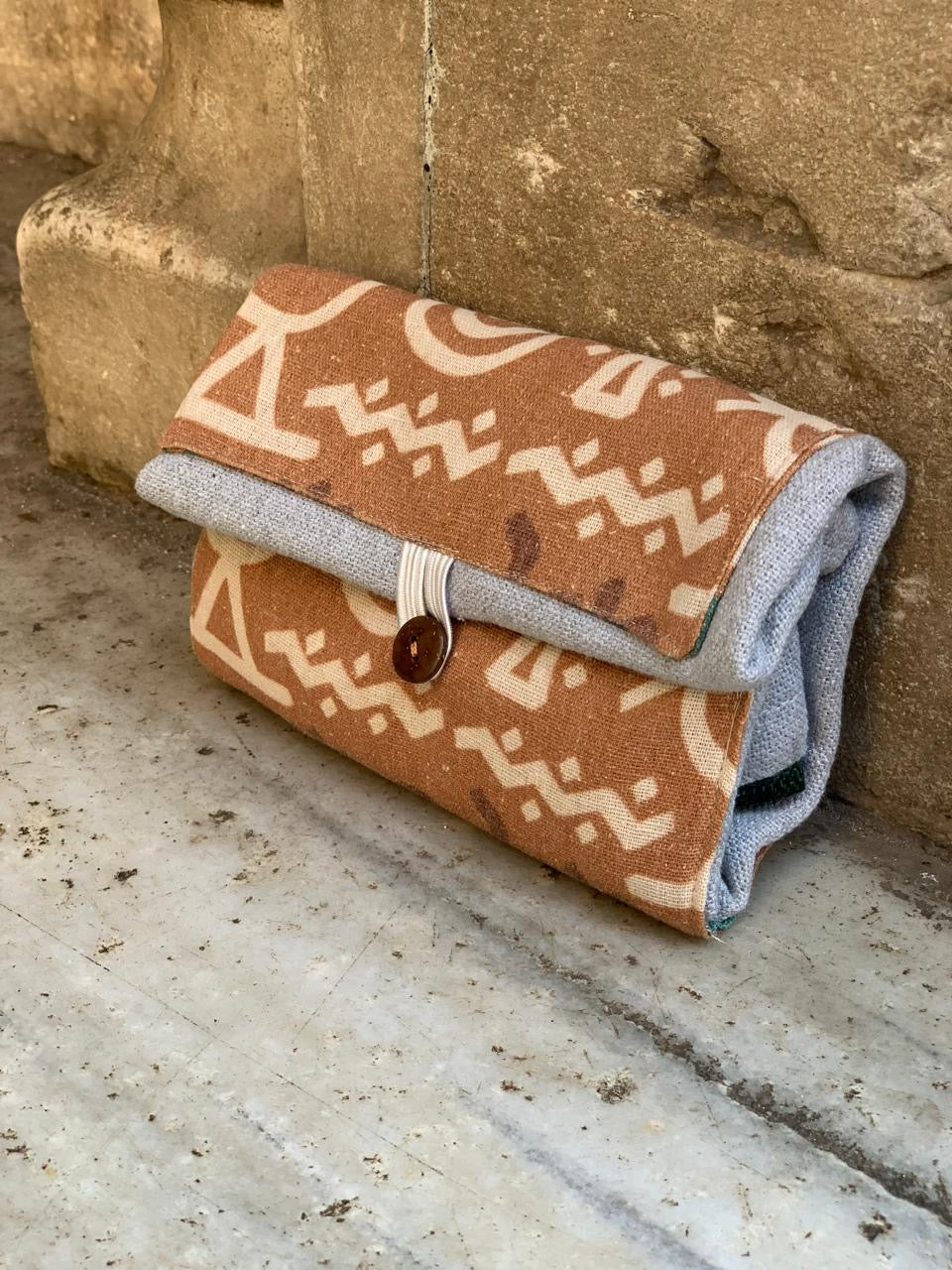 Brown folk “E” Tote /clutch bag
