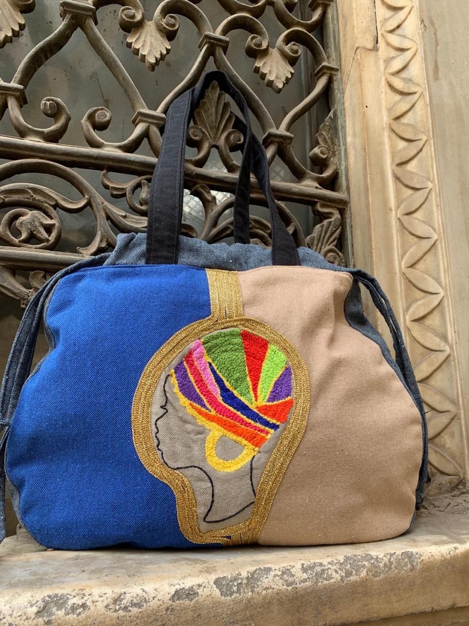 Afro strip “E” Tote /clutch bag