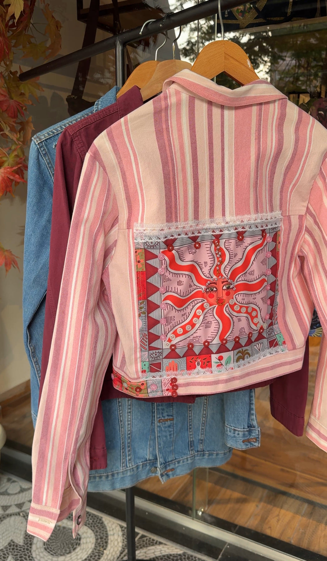 Stripes pinkish Recycle denim jacket